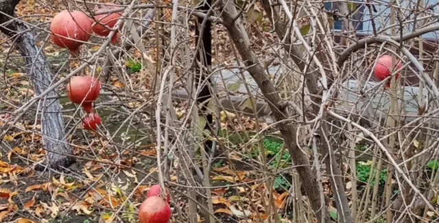В конце концов женщина показала, сколько плодов удалось собрать с трех кустов — это несколько ящиков. Некоторые гранаты потрескались, потому что погода летом была дождливой. Их хозяйка планирует переработать на сок, а целые отложит на хранение.