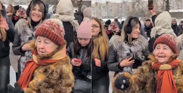На нем можно увидеть бабушку-киевлянку, одетую в теплую зимнюю одежду. Она демонстрировала оживленные движения, чем радовала публику вокруг и впоследствии пользователей сети. Украинцы отметили, что возраст — только в паспорте, а душа никогда не стареет.