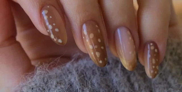 Анималистические принты давно остаются классикой моды, но теперь они уверенно переходят в сферу бьюти. Новым трендом маникюра в 2026 году становится "олений принт" — мягкий узор из карамельно-кремовых оттенков и характерных пятнышек.