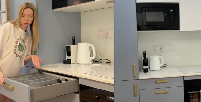 "В Варшаве бешено дорого и поэтому нам пришлось арендовать квартиру за 140 тысяч в месяц. Если вы себе представили пентхаус, то нет, это всего лишь 45 квадратов и количество сюрпризов на квадратный метр здесь достаточно. Если с такой арендой не будет хватать на рестораны, то здесь есть более-менее полноценная кухня, с техникой, посудомойкой и всеми видами ложек и вилок", — рассказала автор видео.