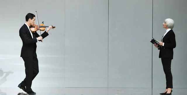 Позже Тильда Суинтон и Хелен Миррен выступили со сцены. Так, Миррен зачитала яркие отрывки из воспоминаний Карла под живой аккомпанемент скрипача Чарли Сиема.