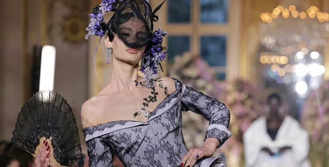 В целом коллекция перекликалась с образами популярных сериалов "Бриджертоны" и "Белый лотос", сочетая в себе шик, многослойность, замысловатые линии и дорогие ткани. В частности, внимание публики привлекли розовое атласное платье-футляр с узелками и гигантской веерообразной панелью, обрамляющей весь торс, юбка из сиреневой тафты со шлейфом, таким огромным, что у него должен быть свой собственный сигнал поворота, и капюшон в форме серебристого лепестка.