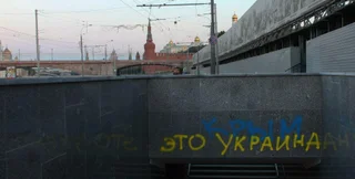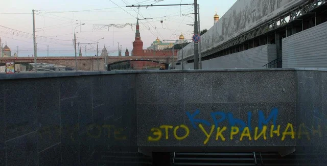 В центре Москвы появились сине-желтые надписи "Крым - это Украина"