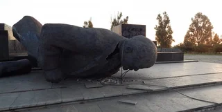 Самый большой в Мариуполе памятник Ленину стащили с постамента, набросив металлический трос.