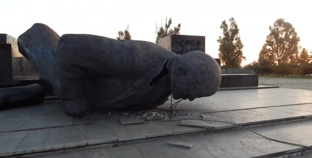 Памятник стянули с постамента либо сегодня ночью, либо на рассвете, сообщили читатели i24.com.ua.
