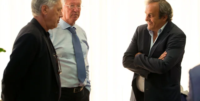 Карло Анчелотти, Алекс Фергюссон и Мишель Платини на форуме тренеров УЕФА / Фото: Getty Images
