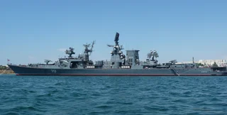 Напомним, "Керчь" был включен в состав ВМФ СССР в 1969 году. Является одним из двух кораблей 1-го ранга в составе Черноморского флота (второй - флагман флота ракетный крейсер "Москва").