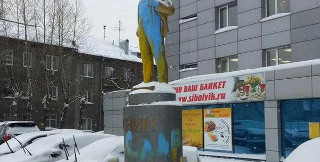 В Новосибирске (Россия) раскрасили памятник Ленину и военную технику на Монументе Славы в цвета государственного флага Украины, сообщает "Радио Свобода".