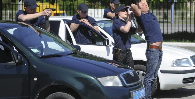 Кадеты патрульной службы МВД во время практического занятия в Национальной академии внутренних дел в Киеве