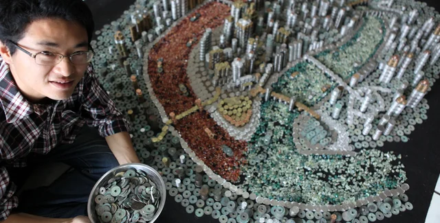 Китайский нумизмат сделал модель города Чунцин из 50 тысяч монет