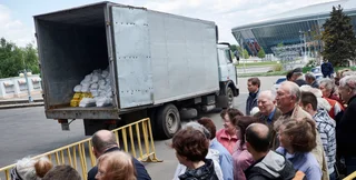 Фонд Рината Ахметова на "Донбасс-Арене" раздал гуманитарную помощь жителям Донецка
