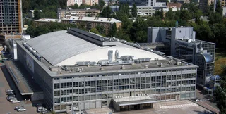 "Безнадежно устаревший киевский Дворец спорта, который в прошлом году отметил 55-летие, продолжает оставаться единственной ареной страны на все случаи жизни"