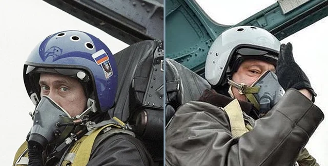 По этому поводу Верховного главнокомандующего прокатили на МиГ-29 из города Василькова Киевской области до села Гавришовка Винницкой. Ну чтоб кадры хорошие получились. Порошенко в кабине второго пилота. Порошенко в кислородной маске. Порошенко машет рукой. Порошенко без маски и не машет, но показывает большой палец — мол, все класс! Внизу — поля. Вверху — небо. Что-то неуловимо родное — между полетом Гагарина и кадрами из фильма "В бой идут одни старики…"