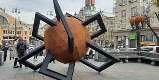 Однако очередной монумент привлек их внимание. Это скульптура молодого художника Алексея Золотарева, которая победила в конкурсе "Цена свободы", проведенном Украинском кризисным медиацентром к 5-летию событий на Майдане. Работа называется "Противостояние", и автор описывает ее так: "Протистояння" – це спроба оформити у візуальний образ відчуття внутрішньої напруги, конфлікту, нестримної сили, що не піддається контролю розуму. Головним важелем в житті завжди залишається щось, що є вищім навіть за пам"ять. Таким важелем, що утримує на поверхні, – є усвідомлення себе вільним.