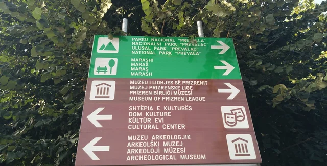 Соответственно, обозначения улиц/площадей/направлений на трех языках (албанском, сербском и турецком), а туристическая информация — на четырех (те же три, плюс "универсальный" английский).