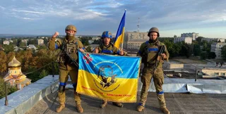 Украинские военные на крыше здания больницы в западной части города Купянск в Харьковской области | Фото: Укринформ