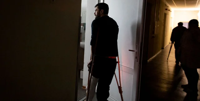 Для тяжелых раненых требуется больше уважения и простого комфорта. Здесь даже лифт не работает, поэтому лестница с первого и на верхние этажи напоминает спортивные соревнования паралимпийцев.