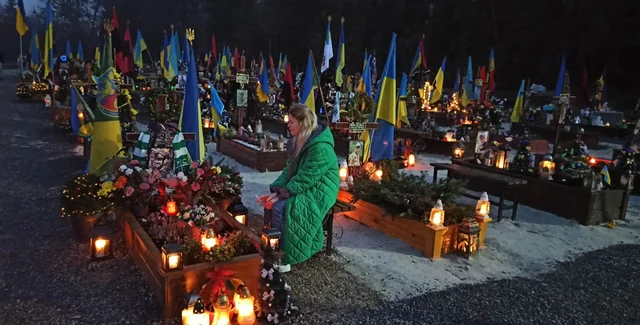 Новогодние гирлянды на могилах погибших военнослужащих, Марсово поле, Львов