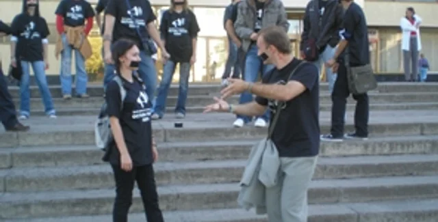 В 12:00 в центре Луганска появилась группа молодых людей с заклеенными черным скотчем ртами.