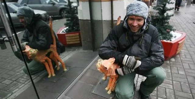 Автор назвал работу "Оставляя испуг отражениям".Рыжий кот с ярко-зелеными глазами перепугано смотрит в свое отражение в витрине. Автор работы, 35-летний скульптор Владимир Билоконь, рассказал, что это уличный кот неизвестной породы, пишет Газета по-украински.