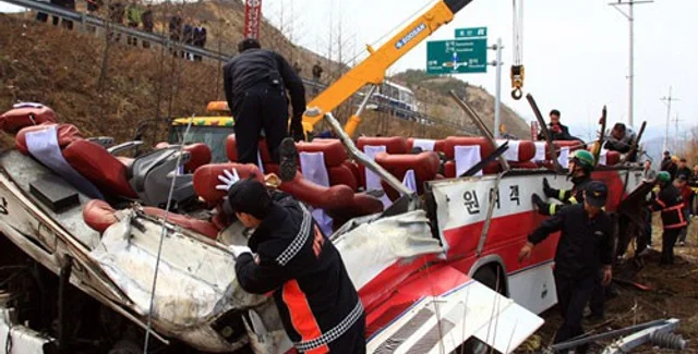 На востоке Южной Кореи автобус с людьми упал в пропасть. В результате ДТП шесть человек погибли, 13 получили ранения различной степени тяжести
