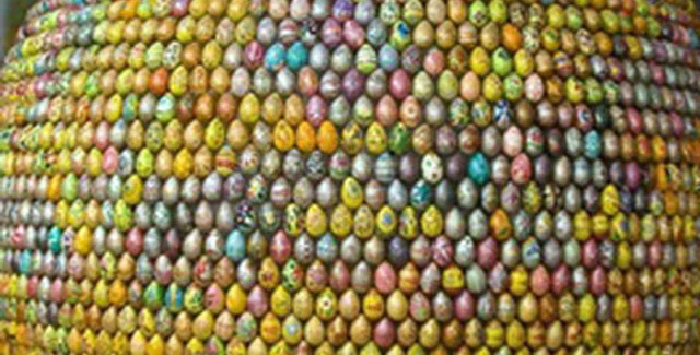 На территории Киево-Печерской лавры установили скульптуру, состоящую более чем из трех тысяч писанок. Она простоит здесь до 12 апреля