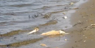 Юрий рассказывает, что песок около воды прямо устелен дохлыми карасями и карпами. В воде – целое кладбище мальков. С другой стороны Киевского водохранилища - та же картина. Берега вдоль сел Глибовка, Ясногородка и Сухолуччя усеяны тухлой рыбой.