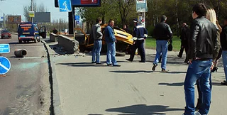 Легковушка "Dacia" на огромной скорости ехала со стороны метро Дорогожичи на Петровку. Возле Кирилловской церкви машина вылетела на тротуар, сбила мусорный бак и залетела в пешеходный переход, где на тот момент находилось около 10 человек.