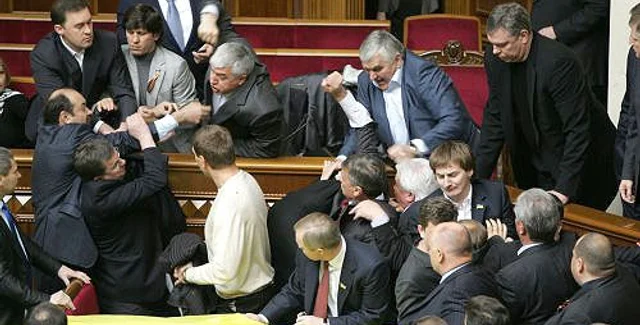 Во время рассмотрения вопроса о ратификации в сессионном зале парламента происходили драки между народными депутатами, а также были применены дымовые шашки, в президиум, где находился председатель Верховной Рады Владимир Литвин, бросали яйца.