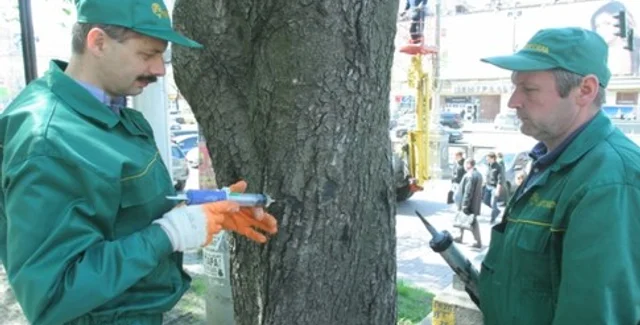 Сначала по всему диаметру столба сверлят 7-сантиметровые отверстия, в них с помощью шприца впрыскивают "лекарство", затем отверстия заклеивают жидким силиконом, пишет газета Сегодня. Стоимость одной манипуляции — 184 гривни. "Благодаря уколу каштан не будет болеть еще 3 года", — говорит Липский.