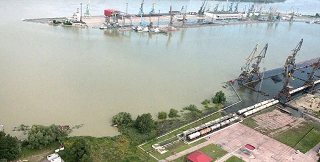 Паводковые воды Дуная залили всю внутреннюю территорию Ренийского порта и промышленную зону, вплоть до железнодорожного переезда
