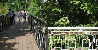 Мост влюбленных в Киеве закрыли на капитальный ремонт, во время которого планируется провести замену деревянной части моста, покрасить металлический каркас и установить освещение