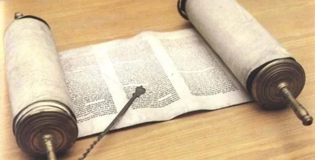 Справка: свиток Торы – это пергамент с текстами Пятикнижия Моисеева. Он используется для еженедельного публичного чтения в синагоге и является главным сакральным предметом у иудеев. Вынос свитка и его чтение – самая торжественная часть обряда. К пергаменту запрещено прикасаться руками, поэтому при чтении свитка пользуются особой указкой.