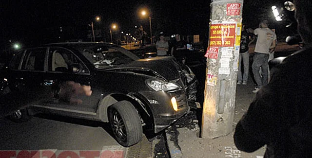 14 июля около часа ночи в Соломенском районе Киева произошло ДТП. На пересечении проспекта Комарова и улицы Героев Севастополя Porsche Cayenne врезался в бетонную опору освещения