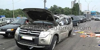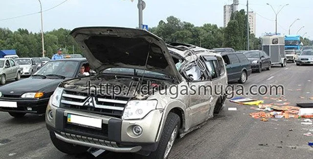 Авария произошла в Киеве вблизи Одесской площади, сообщает ТСН. Mitsubishi Pajero спортсмена, который ехал вместе с женой, несколько раз перевернулась после столкновения с Suzuki Vitara, которая выехала на встречную полосу.