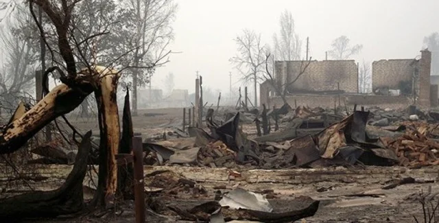 Глава Госкомлесхоза Николай Шершун на пресс-конференции сообщил, что в приближенных к пожарам населенных пунктах огонь начал перебрасываться на жилые дома.