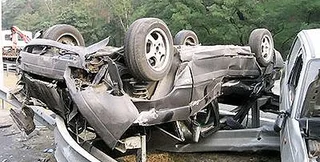 Толчок был такой силы, что обе машины потеряли управление, их снесло на разделительный отбойник. Стальные рейки такой удар не выдержали, и машины перевернувшись на крыши, вылетели на встречную полосу.