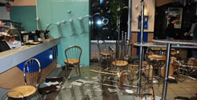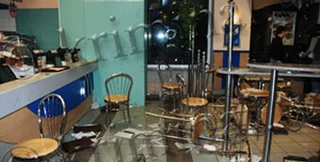 По рассказам очевидцев происшествия, "банда ворвалась в здание, и за минуту просто разнесла окна заведения стульями, устроив настоящий погром", а уже через минуту бесследно исчезла во дворах многоэтажек, сообщает газета Сегодня.