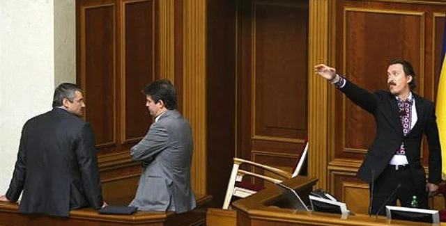 В данный момент возле трибуны и президиума парламента находятся около 30 членов фракции "БЮТ-Батьківщина".