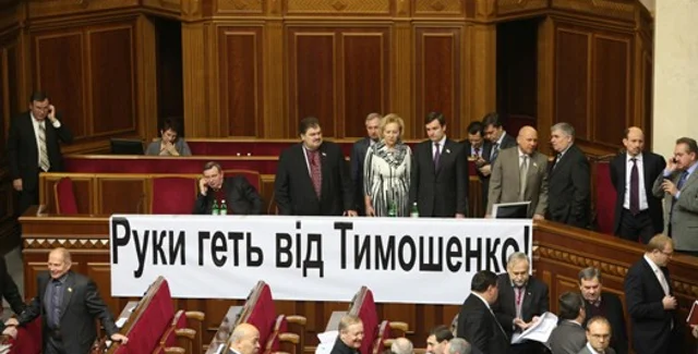 Как сообщает "Интерфакс-Украина", перед началом пленарного заседания бютовцы растянули в сессионном зале плакаты: "Прекратить политические репрессии!", "Руки прочь от Тимошенко!", "Преступников из Партии регионов – за решетку!".