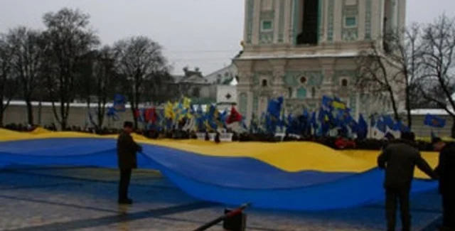 Участники акции, посвященной Дню соборности Украины на Софийской площади в Киеве, расходятся. На площади осталось всего около тысячи человек