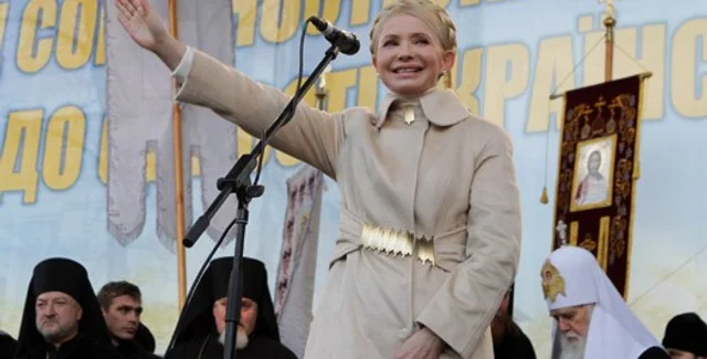 Когда Филарет завершил свою речь, толпа начала скандировать"Слава патриарху Филарету", а затем - "Юлю на сцену". Лидера "БЮТ-Батькивщины" долго упрашивать не пришлось, правда, ее речи предшествовал пролог поэтаДмитрия Павлычко, который уже не впервые принимает участие в политическихакциях Тимошенко.