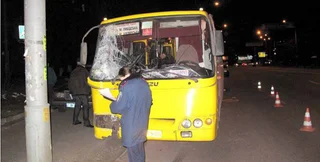 На Краснозвездном проспекте в Киеве водитель маршрутного автобуса "Богдан" не справился с управлением и выехал на тротуар, где совершил наезд на электроопору