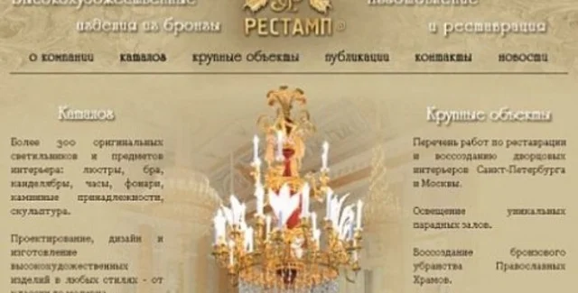Фирма "Рестамп" славится своими роскошными светильниками для больших объектов, как-то Храм Христа Спасителя, Государственный русский музей "Мраморный дворец" и личные апартаменты президента России в Кремле - так называемое "Здание №1 Московского Кремля".