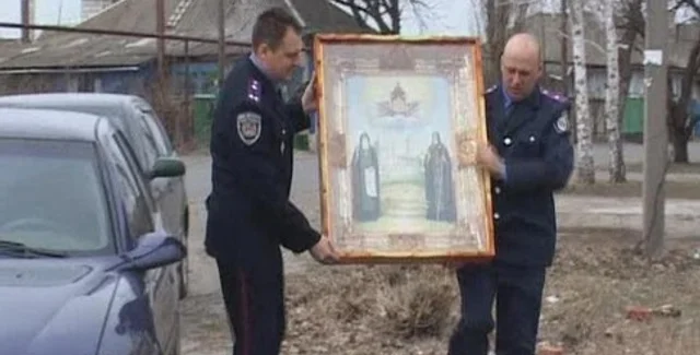 "Одна икона принадлежит кисти неизвестного художника XIX столетия "Царь богов" и представляет историческую ценность, вторая - современная "Двух святых", - сказала Сегодня глава пресс-службы УМВД в Луганской области Татьяна Погукай.