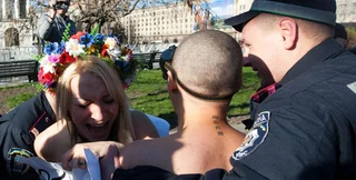 Сегодня в Киеве были задержаны четыре представительницы женского движения Femen, проводившие акцию протеста на площади Независимости