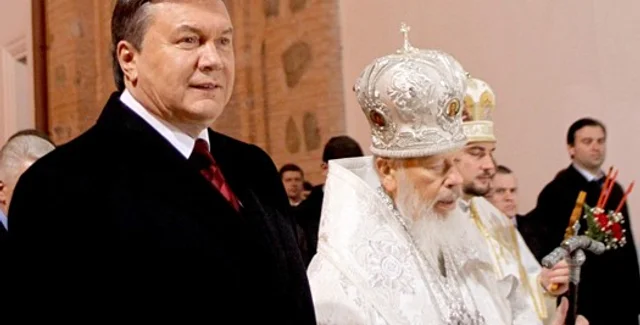 Президент Украины Виктор Янукович принял участие в праздничном пасхальном богослужении в Свято-Успенской Киево-Печерской лавре, которая принадлежит Украинской православной церкви Московского Патриархата