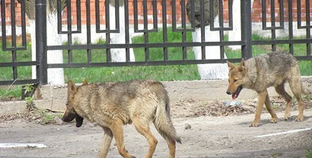 В Жовтневом районе Мариуполя на ул. Карла Либкнехта две волчицы живут во дворе дома уже около недели и держат в страхе десятки людей