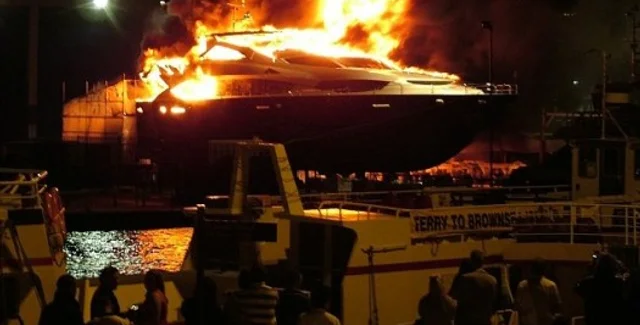 Одна из самых роскошных яхт мира, стоимостью $19,5 млн, сгорела на глазах у владельца – мексиканского миллиардера, имя которого не называется. По версии следователей, яхта, пришвартованная в британском порту Poole, вспыхнула от удара молнии.