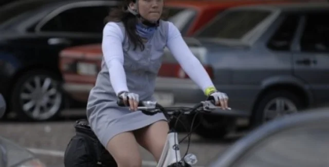 В юбках и на каблуках девушки показали киевлянам, что на велосипеде удобно ездить в любых обстоятельствах